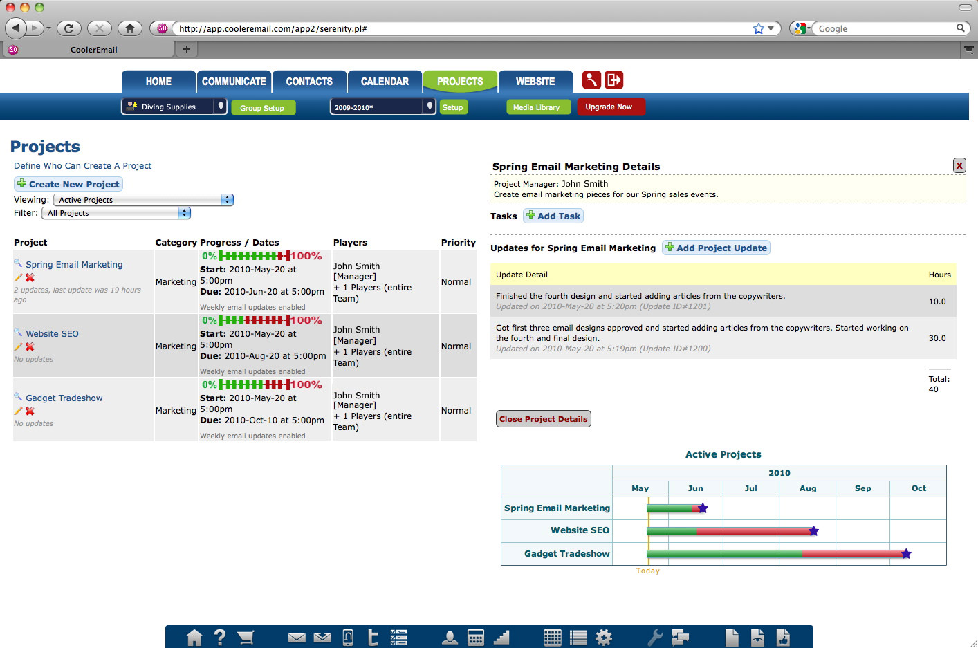 Fansites - Each team has a public-facing fansite that is controlled by the captain. This fansite has a calendar, roster, news, and fan comment sections to keep fans informed.